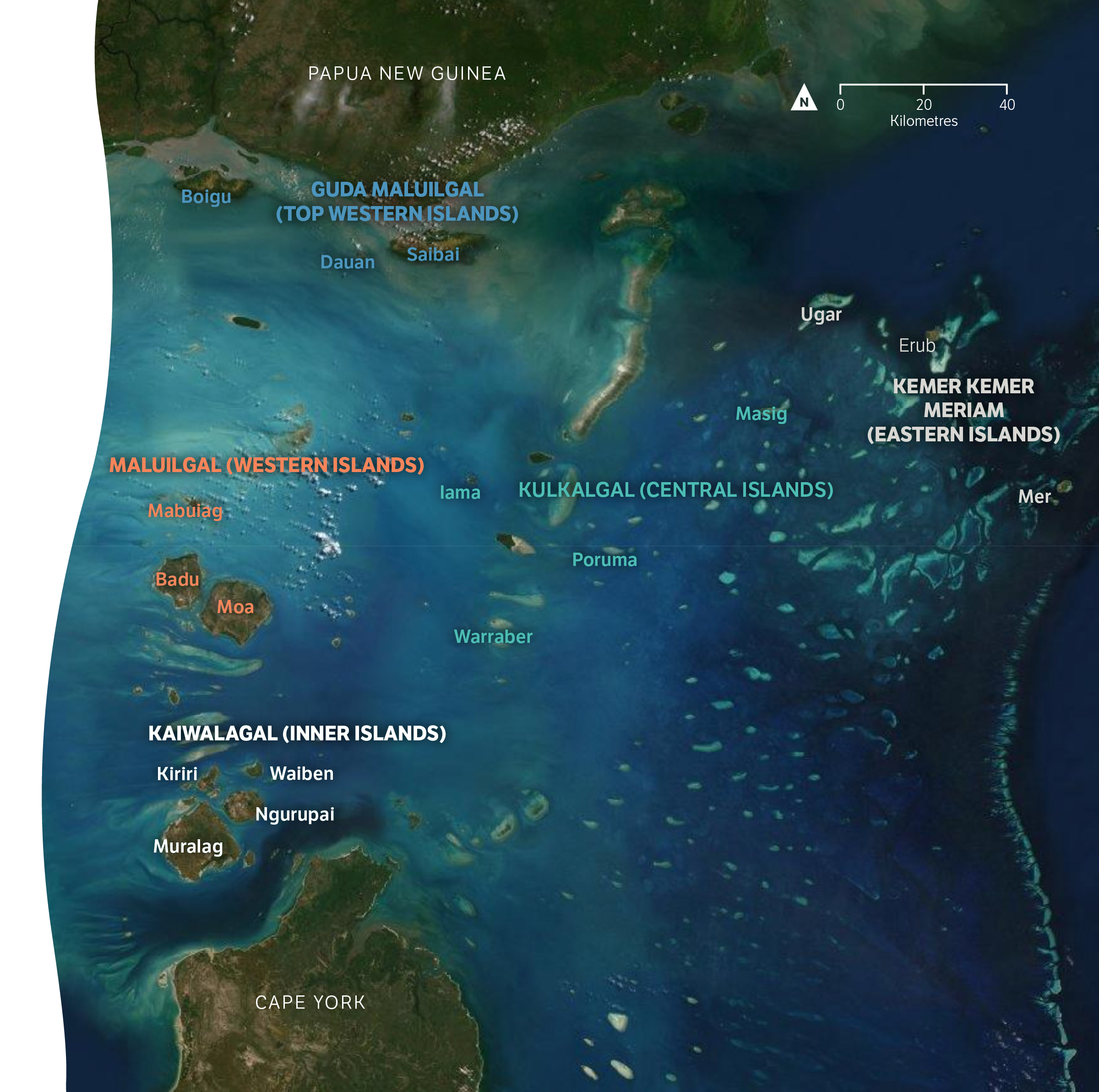 Torres Strait stretches 150km northwards from Cape York Peninsula to Papua New Guinea and up to 300km from east to west. It includes five Traditional Owner nations of Kaiwalagal, Muluilgal, Guda Maluilgal, Kulkalgal and Kemer Meriam (see map 1). The 48,000 km2 region is the most northerly part of Australia and home to about 9,500 mostly Torres Strait Islander and Aboriginal People who live on 17 of the region’s 300 islands.